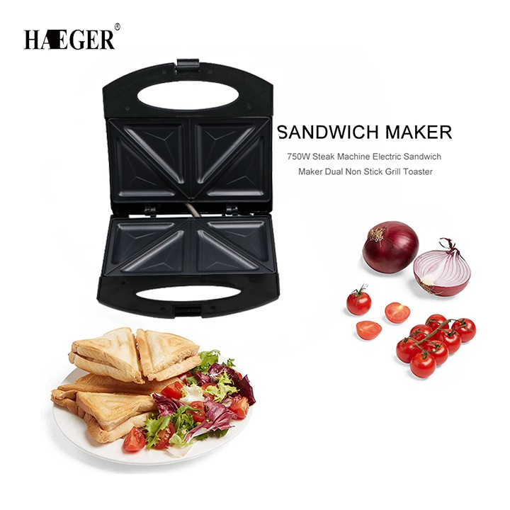 Máy nướng bánh Haeger giúp bạn có một mẻ 4 chiếc sandwich tam giác vàng rộm, đẹp tuyệt chỉ trong 3 phút.