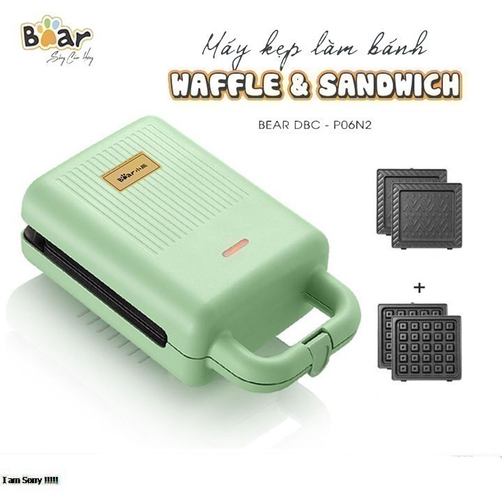- Máy kẹp nướng bánh Bear có 2 loại vị thay thế: vỉ sandwich & vỉ wafle