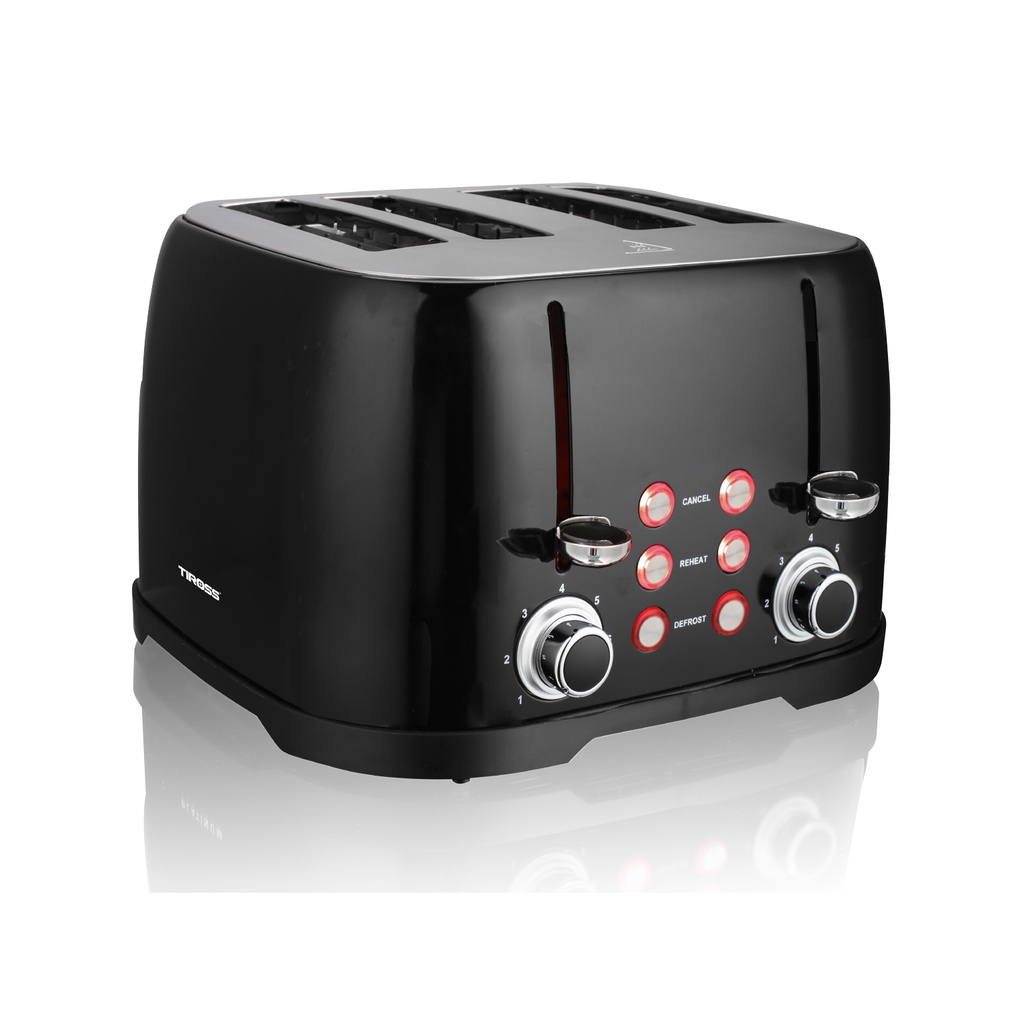 *Máy nướng bánh mỳ 4 ngăn Tiross TS9660 có thiết kế nhỏ gọn, dễ sử dụng. Sản phẩm là thiết bị gia dụng hiện đại giúp cuộc sống trở nên tiện nghi hơn.*Vỏ máy làm từ inox sơn phủ tĩnh điện tăng độ bền, chống han gỉ và tăng vẻ đẹp thẩm mỹ. Điều khiển dạng núm vặn có thể điều chỉnh tốc độ mong muốn.