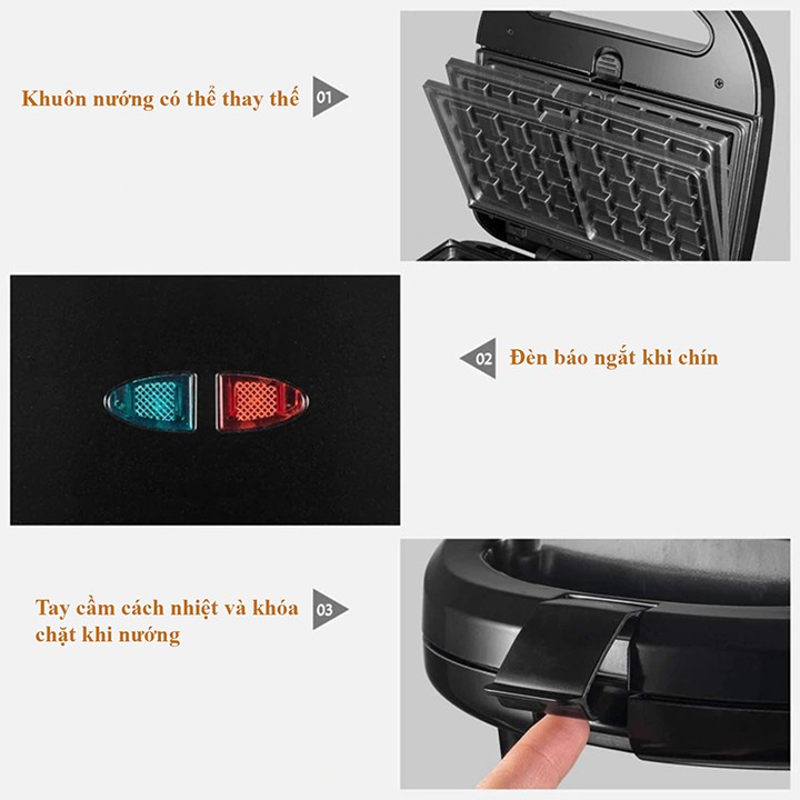 [Mã ELHADEV giảm 4% đơn 300K] Máy nướng bánh sandwich, hotdog, waffle Chính Hãng Sokany - 3 trong 1