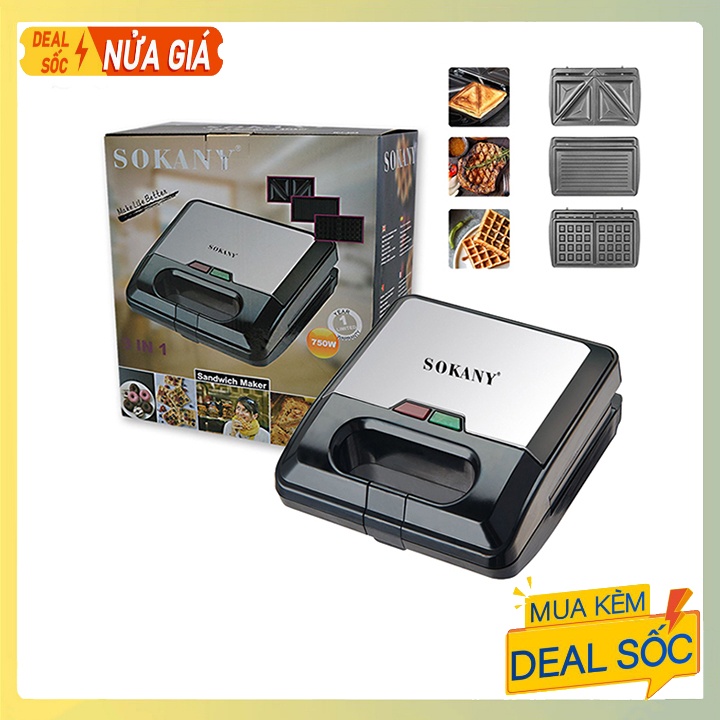 Máy nướng bánh sandwich, hotdog, waffle Chính Hãng Sokany - 3 trong 1