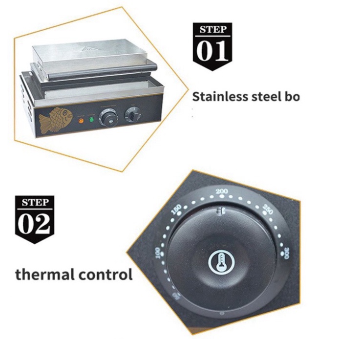 Máy nướng bánh cá TAIYAKI là sản phẩm được sử dụng để nướng bánh chỉ trong 2- 4 phút, cho bánh vàng đều, tạo hình cá đẹp mắt. Là sản phẩm nướng bánh nhanh, dễ sử dụng và an toàn, máy nướng bánh cá phù hợp sử dụng cho các quán bán đồ ăn nhanh, cạnh trường học, khu đông dân cư…
