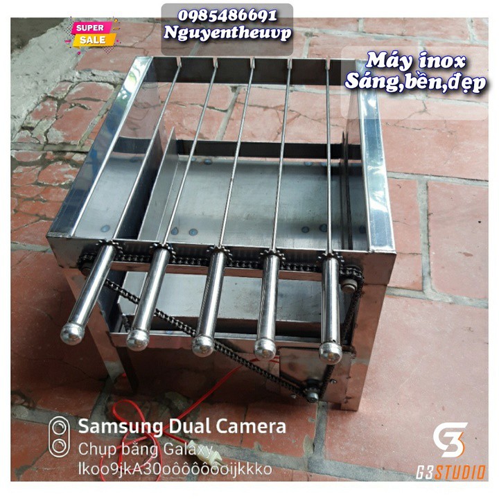 Thiết Bị Điện Gia Dụng > Đồ gia dụng nhà bếp > Lò vi sóng || Máy nướng thịt chả lò quay gà vịt mini bếp nướng than hoa mô tơ tự động chuẩn (xiên 100% inox, đi kèm máy)Còn hàng