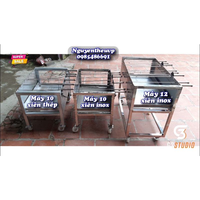 - Máy nướng thịt và gà 10 xiên inox: Mô tơ 28w, quay 2 gà khoảng 3kg