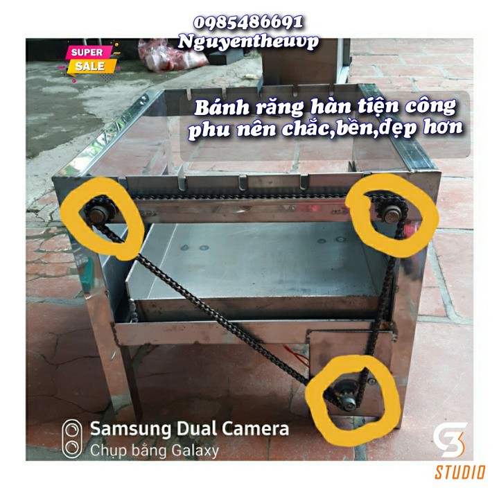 - Máy nướng thép dày 2li, chân bằng thép hộp rất chắc chắn