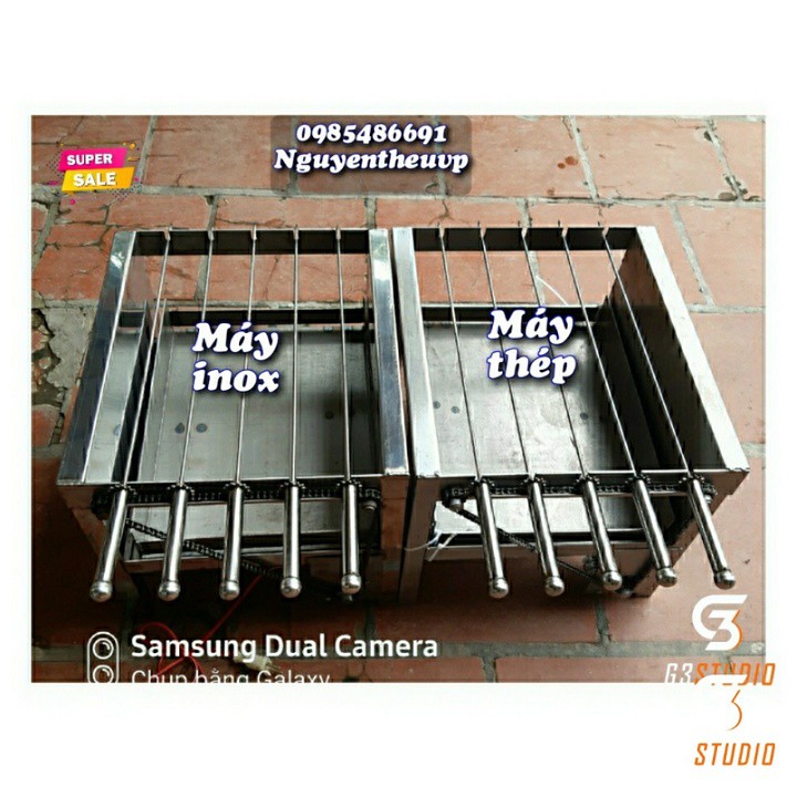 - máy chỉ nướng thịt: mô tơ nhỏ. chỉ gồm 5 xiên đơn