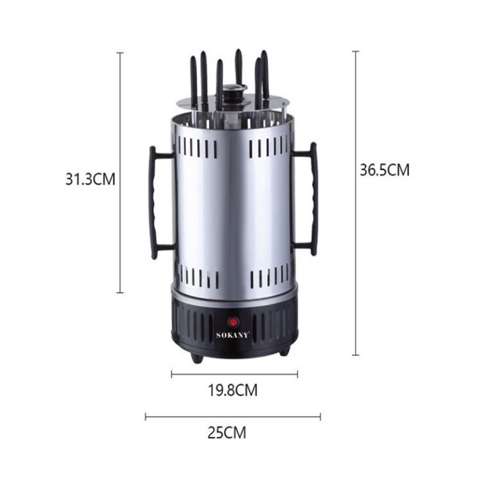 - Máy nướng thịt xiên không khói gia đình SOKANY trang bị hệ thống bánh răng di chuyển, giúp cho các xiên thức ăn xoay tròn 360 xung quanh thanh gia nhiệt. Tốc độ quay đều, vừa phải, nhờ đó thức ăn sẽ được chín đều, không bị cháy xém, tích kiệm được thời gian và công sức đứng trở đồ, ngửi mùi khói và hít bụi than