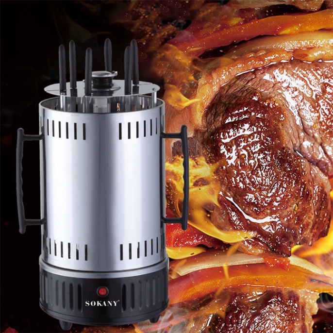 - Máy nướng thịt xiên không khói gia đình SOKANY trang bị hệ thống bánh răng di chuyển, giúp cho các xiên thức ăn xoay tròn 360 xung quanh thanh gia nhiệt. Tốc độ quay đều, vừa phải, nhờ đó thức ăn sẽ được chín đều, không bị cháy xém, tích kiệm được thời gian và công sức đứng trở đồ, ngửi mùi khói và hít bụi than