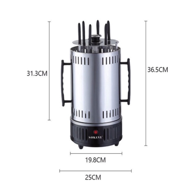 Giới thiệu Máy nướng thịt xiên dùng điện, nướng hải sản không khói quay 360 độ SOKANY 1200W
