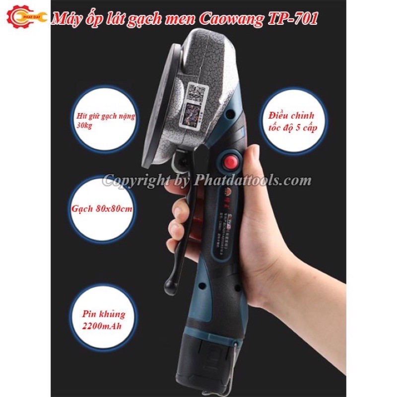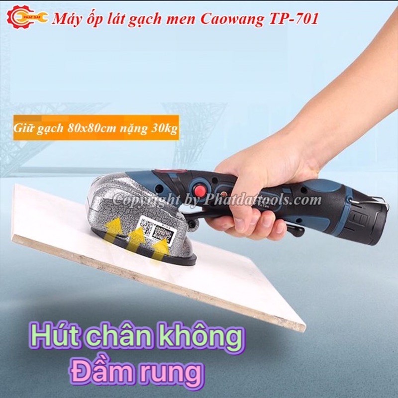 -Với những người thợ nề,công việc ốp lát gạch đá men là một phần không thể thiếu trong quá trình thi công hoàn thiện công trình.Nhưng trong quá trình thi công,việc đưa gạch vào vị trí cần ốp lát,căn chỉnh gạch hầu như vẫn được làm thủ công vừa tốn thời gian,sức lực và gây vỡ gạch rất nhiều.Với Máy ốp lát gạch 2 chức năng Caowang TP701 chuyên dụng thì tất cả những vấn đề trên sẽ được giải quyết một cách hiệu quả nhất.-Máy ốp lát gạch 2 chức năng Caowang TP701 được thiết kế nhỏ gọn,nhẹ với đầu hút bằng cao su siêu bền,đầu máy bằng nhôm đúc,thân vỏ nhựa ABS chắc chắn.