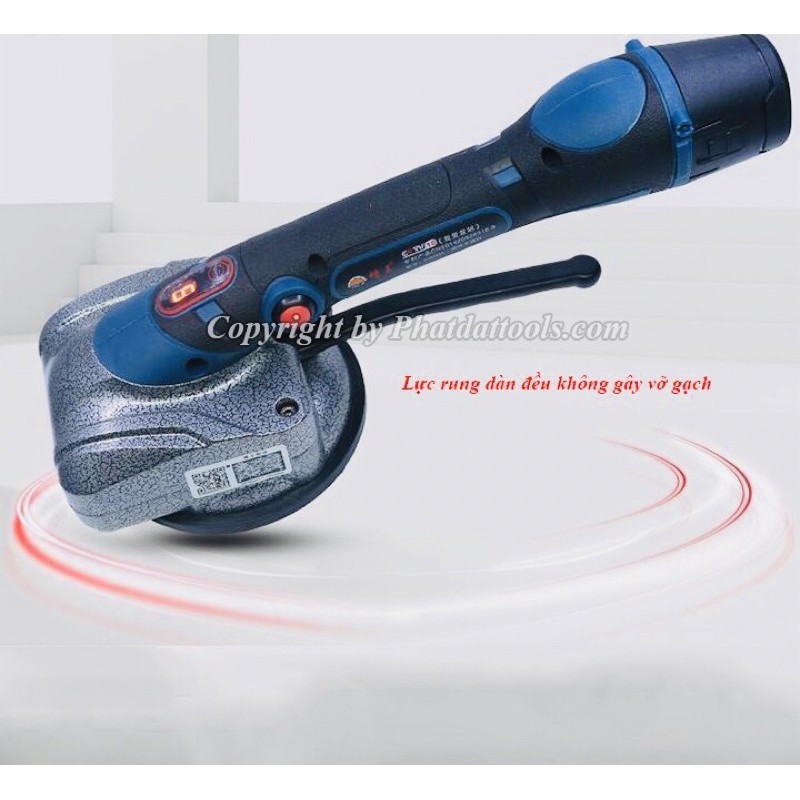 Máy có nút bấm điều chỉnh tốc độ rung 5 cấp hiển thị trên màn hình Led phù hợp với loại gạch thi công,bạn sẽ không phải dùng búa hay bất kì một dụng cụ nào khác để gõ điều chỉnh độ lồi lõm của gạch,vừa gây ồn,mất thời gian,tốn sức và rất dễ vỡ gạch.