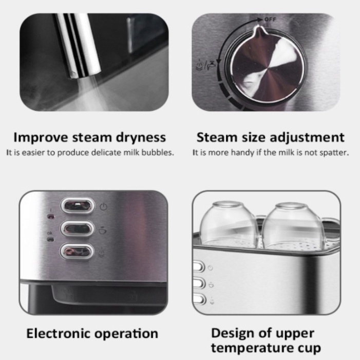 - Chế độ đánh bọt giúp pha chế cà phê Cappuccino theo phong cách Italia với hương vị thơm ngon đặc trưng.
