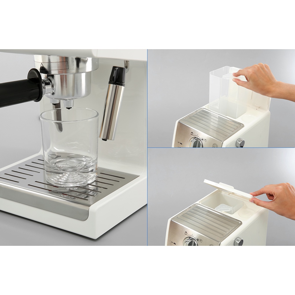 ● Máy pha cà phê sử dụng bình chứa nước bằng nhựa cao cấp, thiết kế tháo rời tiện vệ sinh khi cần