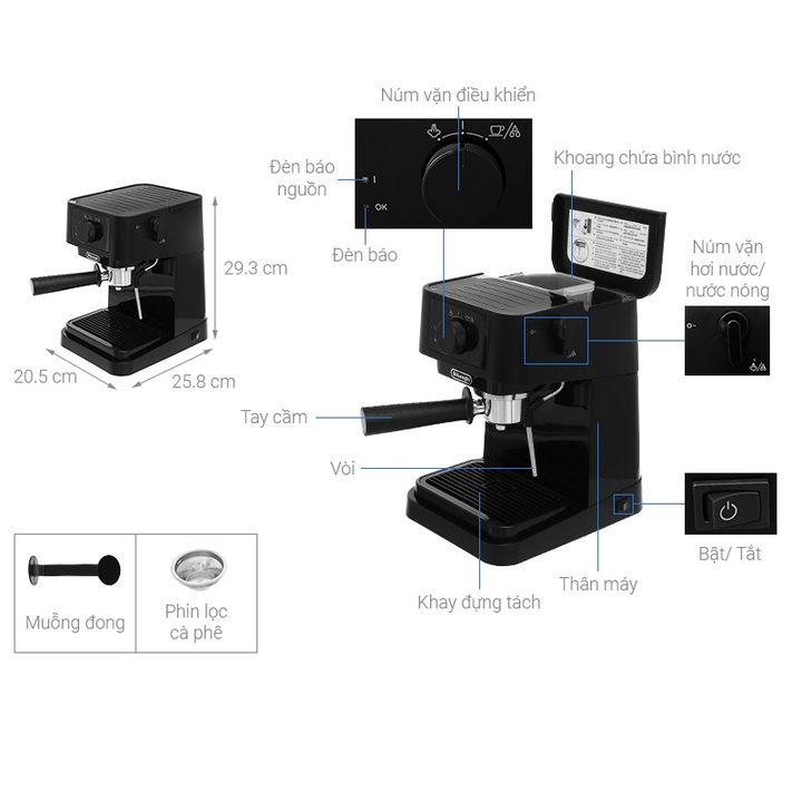 Thiết Bị Điện Gia Dụng > Đồ gia dụng nhà bếp > Máy pha cà phê & Phụ kiện || Máy pha cà phê Espresso cao cấp EC235.BK, công suất 1100W. Thương hiệu Delonghi [CHÍNH HÃNG - BẢO HÀNH 1 NĂM]Còn hàng