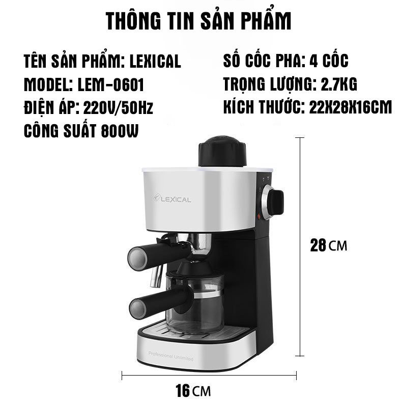 Giới thiệu quý khách hàng sản phẩm Máy Pha Cafe Lexical ❤️CHÍNH HÃNG❤️ tự động dễ sử dụng, công suất 1080W [Bảo hành 12 tháng]✅ CHI TIẾT SẢN PHẨM: