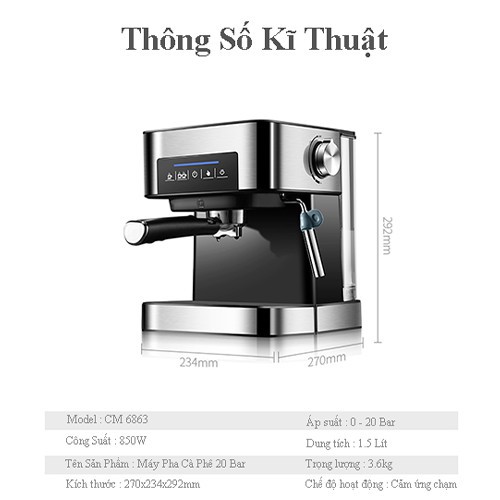 Máy pha cà phê Espresso chuẩn áp suất 20 bar mạnh mẽ thế hệ mớiHàng Chính Hãng