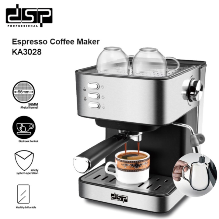 Máy pha cà phê Espresso DSP KA3028, công suất 850W, áp lực bơm 15 bar, 1.6 lít, bảo hành chính hãng 12 tháng