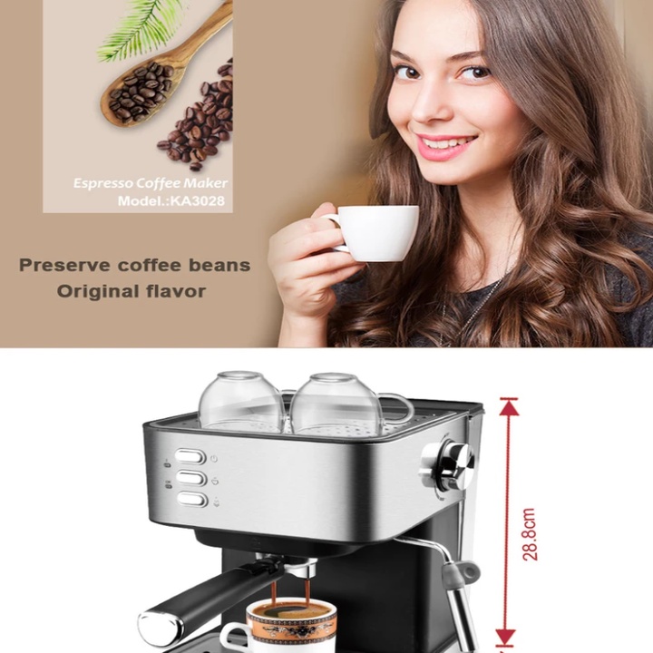 - Áp suất pha lên tới 15 bar cùng công suất hoạt động 850W sẽ chiết xuất được toàn bộ hương vị trong hạt cà phê với lớp crema dày, béo ngậy, sẽ cho ra ly Espresso tuyệt hảo.