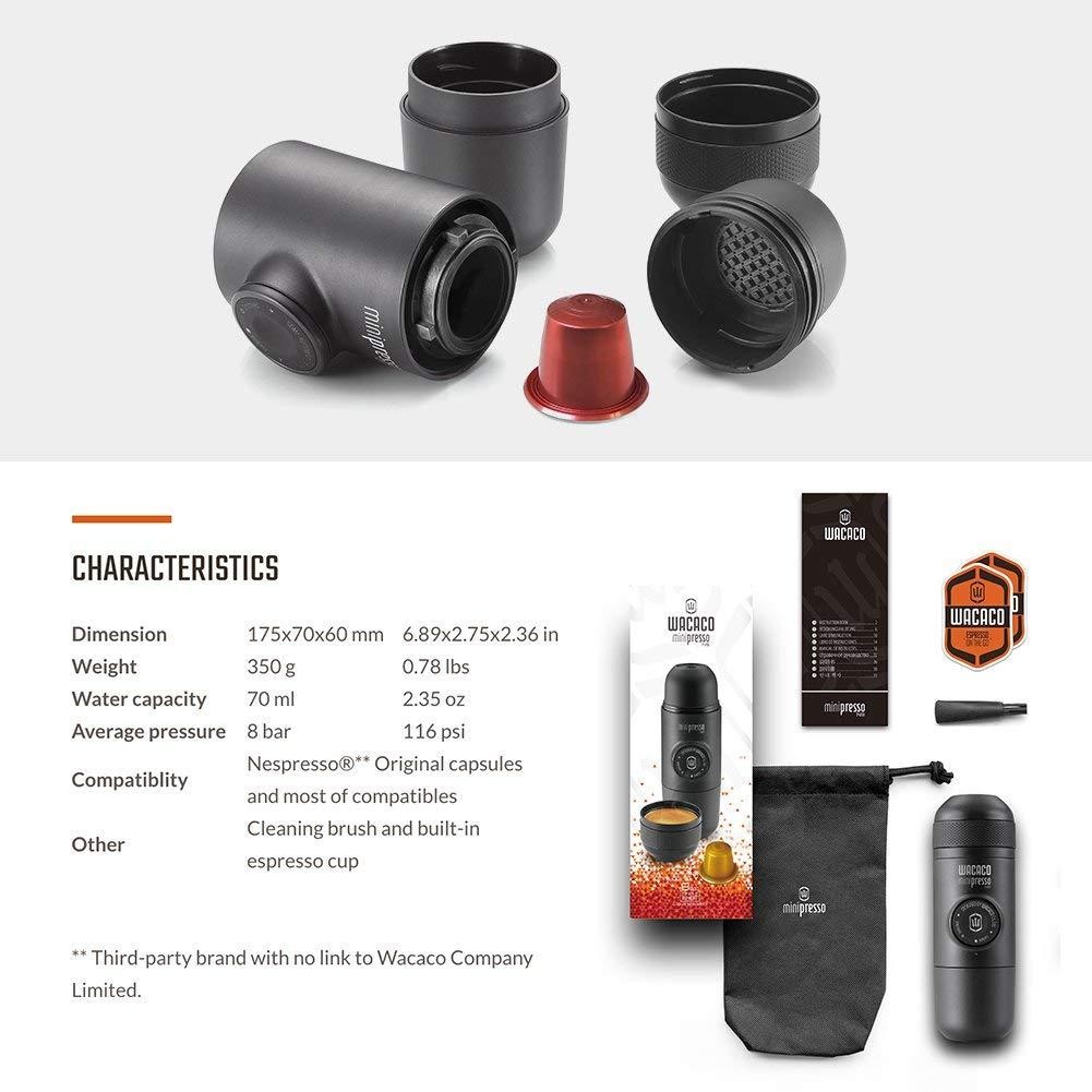 Thưởng thức cà phê Espresso ở bất cứ đâu với máy pha cà phê Wacaco Minipresso NS tương thích với viên nang Nespresso. Một chiếc máy pha Espresso cầm tay nhẹ, nhỏ gọn và cực kỳ tiện lợi khi sử dụng, bỏ qua những thao tác bất tiện để có một shot Espresso ngon, kể cả ở nhà hoặc khi đang di chuyển.