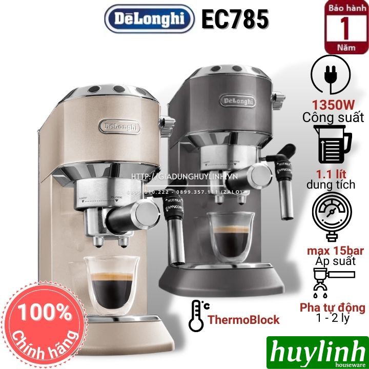 Máy pha cà phê Delonghi EC785 là dòng máy pha cafe Espresso mới tới từ Delonghi Việt Nam với các màu sắc sơn tĩnh điện sang trọng, áp lực bơm tối đa 15 bar, nút pha 1 - 2 tách riêng biệt và vòi đánh hơi tạo bọt sữa mạnh mẽHuy Linh phân phối và bảo hành chính hãng tại Delonghi Việt Nam.