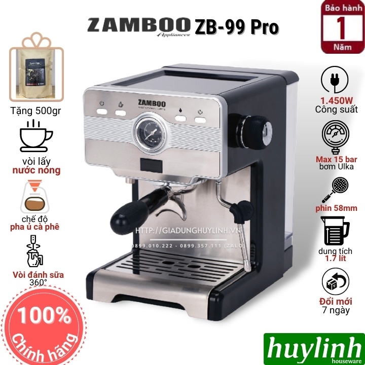 [Mã ELHAMS5 giảm 6% đơn 300K] Máy pha cà phê Espresso Zamboo ZB-99 PRO - Tặng 500gr cafe