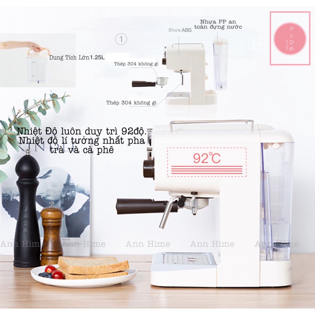 ✅Máy sử dụng cực kì đơn giản: Bạn bật công tắc nguồn (dưới cùng), chờ từ 20 - 30s cho nồi hơn đun nóng nước, khi đó nhiệt độ nước lên khoảng từ sau 80 - 90 độ là bạn có thể đảm bảo pha được cà phê. Sau đó bấm nút pha cà phê (ở giữa), bạn canh chừng cà phê tới mức phù hợp với bạn, rồi nhấn thêm 1 lần nữa cho nước ngắt là xong.