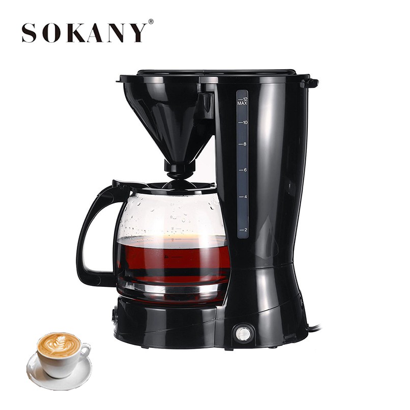 - Thiết kế đơn giản, nhỏ gọn, bắt mắt với tông màu đen pha tông màu bạc sáng sang trọng, máy pha cà phê SOKANY có thể pha từ 12 đến 15 cốc cà phê trong một lần .