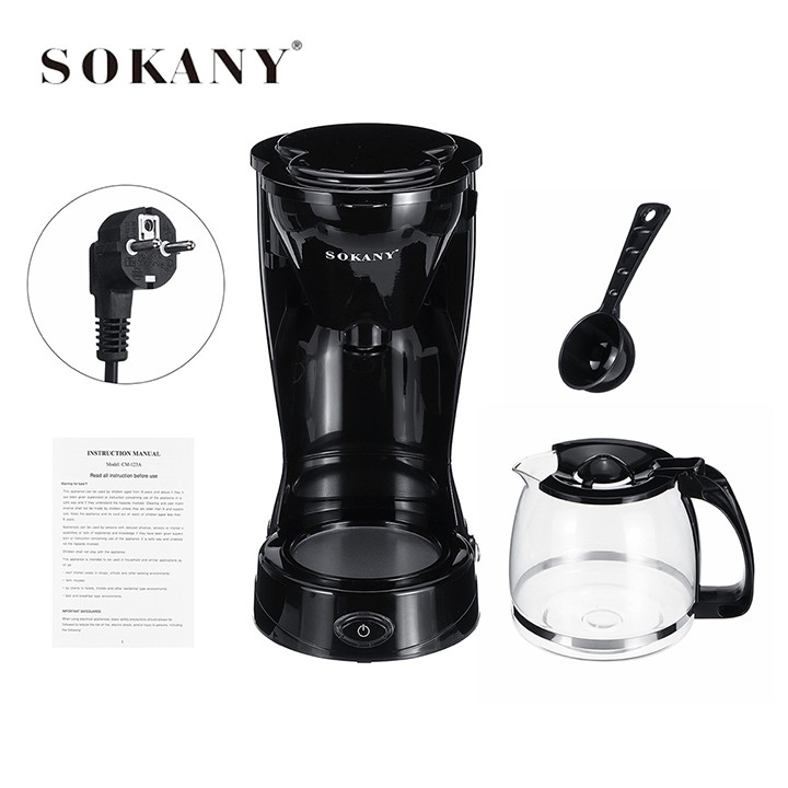 - Máy cà phê SOKANY sử dụng dễ dàng có vạch chia các mức cafe hai bên, vạch chia mực nước đun sôi hệ thống van chống nhỏ giọt, lưới lọc có thể tháo rời dễ dàng vệ sinh khi cần thiết.