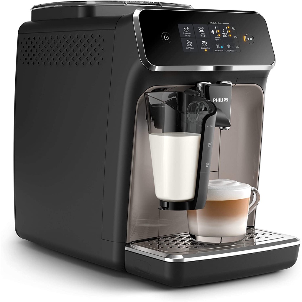 MÁY PHA CÀ PHÊ HOÀN TOÀN TỰ ĐỘNG PHILIPS SERIES 2200 EP2235/40Với Máy pha cà phê hoàn toàn tự động Philips Series 2200 EP2235/40, màn hình cảm ứng, bạn có thể thưởng thức hai đặc sản cà phê thơm ngon (espresso, cà phê) từ hạt cà phê tươi chỉ bằng một nút bấm. Bạn có thể dễ dàng chuẩn bị một ly cappuccino kem hoặc latte macchiato bằng cách tự tay làm sữa. Máy pha cà phê Philips giúp bạn thưởng thức nhiều loại cà phê chất lượng được làm từ hạt cà phê tươi ngay tại nhà.