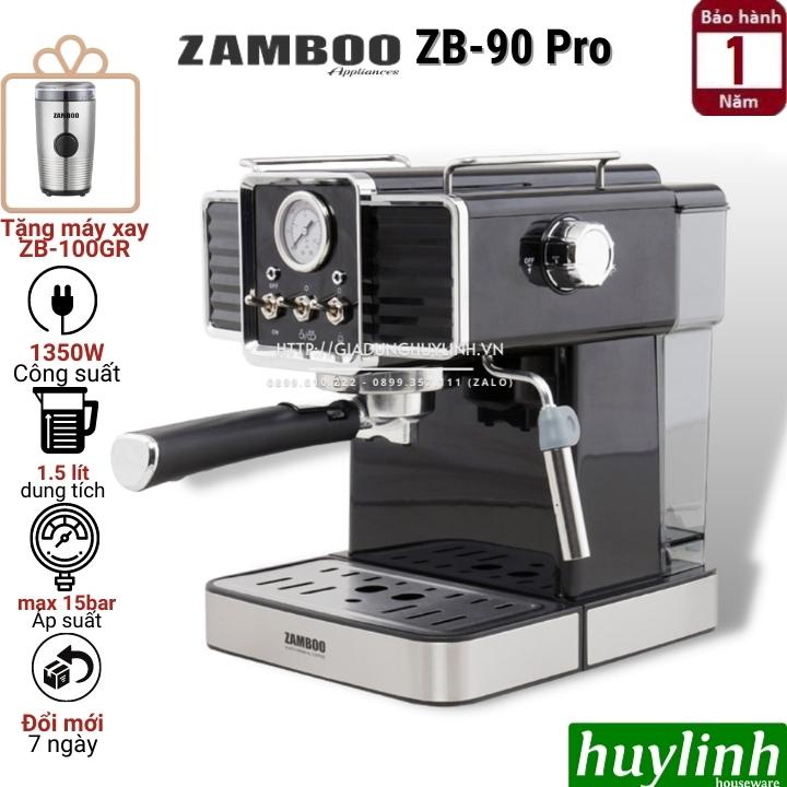 Máy pha cà phê Zamboo ZB-90 Pro mới ra mắt tháng 7 năm 2020 có khả năng pha mồi (bơm 1 lượng nước nhất định r ngắt - sau đó mới tiếp tục pha liên tục) với động cơ mạnh mẽ 1350W, áp lực bơm tới 15 bar.Huy Linh phân phối và bảo hành chính hãng tại Việt Nam