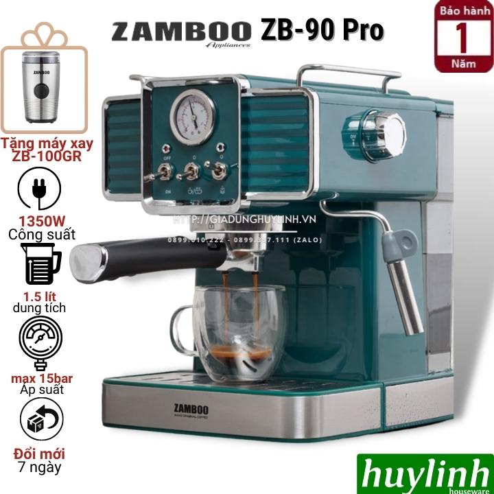 [Mã ELHAMS5 giảm 6% đơn 300K] Máy pha cà phê gia đình Zamboo ZB-90 PRO - Tặng máy xay cafe ZB-100GR [Đen - Xanh]
