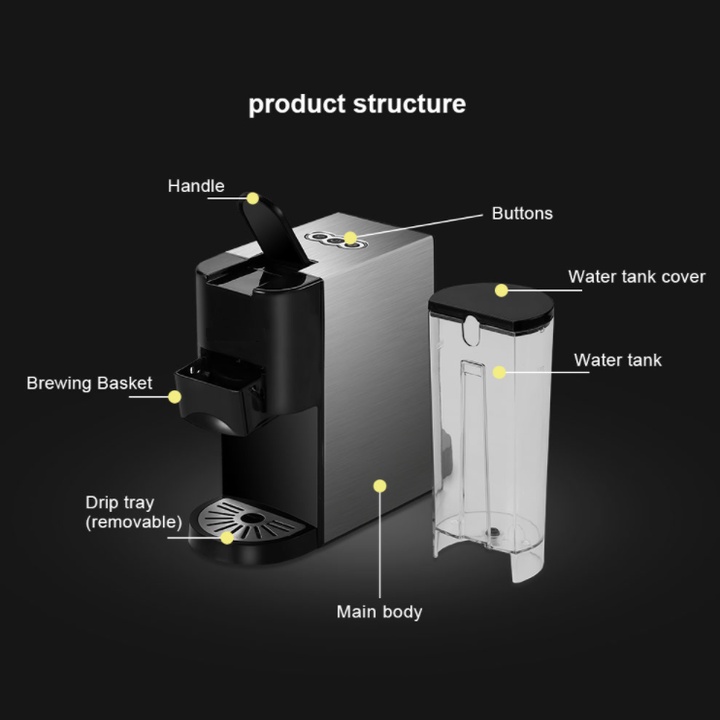 📚 Bộ sản phẩm bao gồm: Thân máy, 3 adapter: 2 adapter dùng cho viên nén và 1 dùng cho cà phê bột