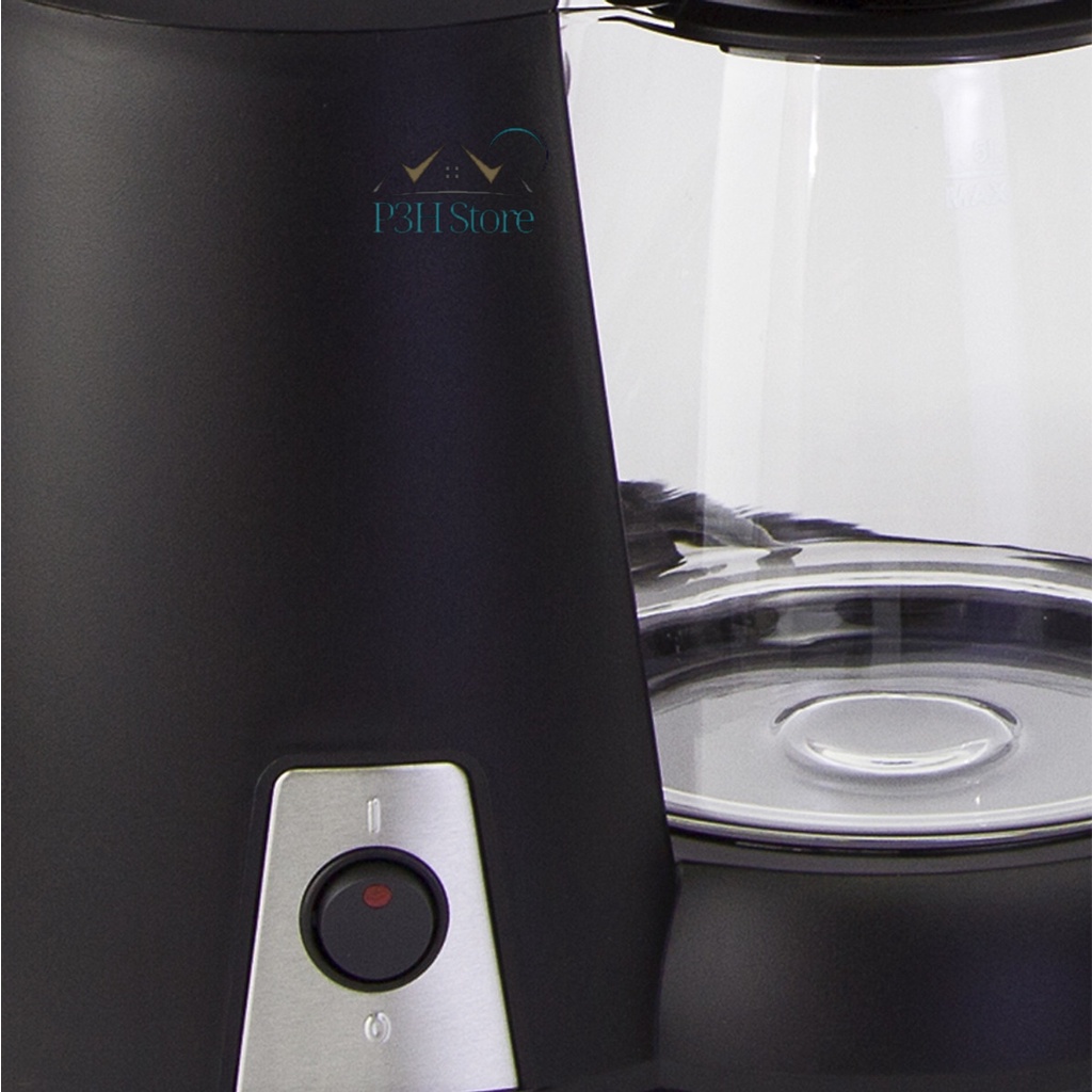 Thiết bị còn được trang bị cốc chứa bằng thủy tinh trong suốt, dễ dàng quan sát được quá trình pha bên trong với dung tích lên đến 1.5L, rất phù hợp cho gia đình đông người hoặc ở cửa hàng, văn phòng làm việc, giúp bạn tiết kiệm thời gian mà vẫn đảm bảo chất lượng cà phê pha thơm ngon.