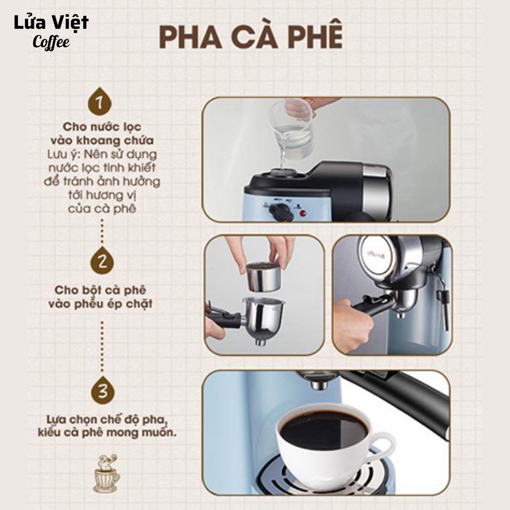 Máy pha cà phê MINI BEAR chính hãng pha cafe Espresso tự động cao cấp nhỏ gọn thanh lịch có viên nén cà phê+THÔNG TIN SẢN PHẨM