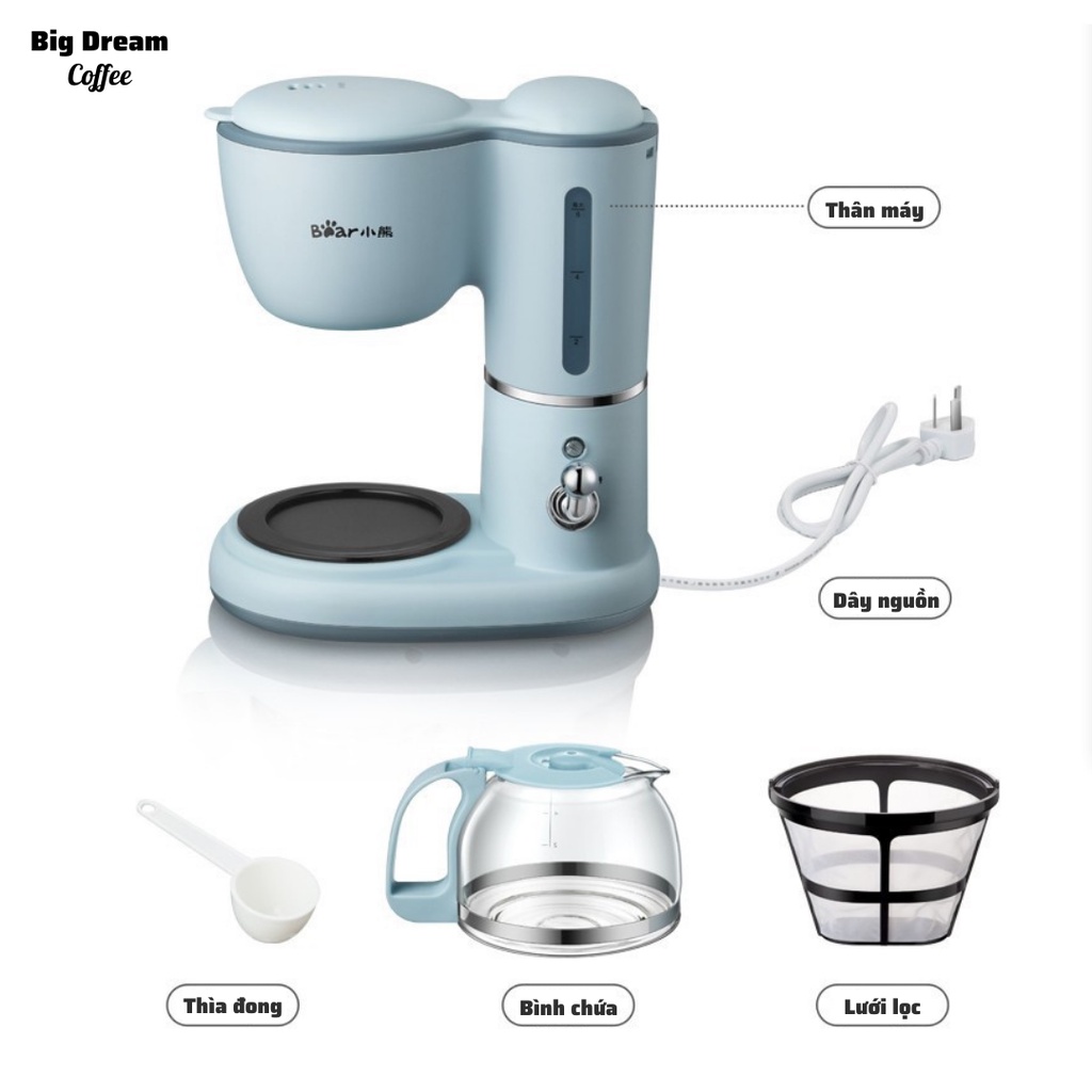 Máy pha cà phê mini tự động BEAR KFJ-A06K1 chính hãng pha coffee Espresso cafe nguyên chất máy pha cafe đa năng_BH 12th