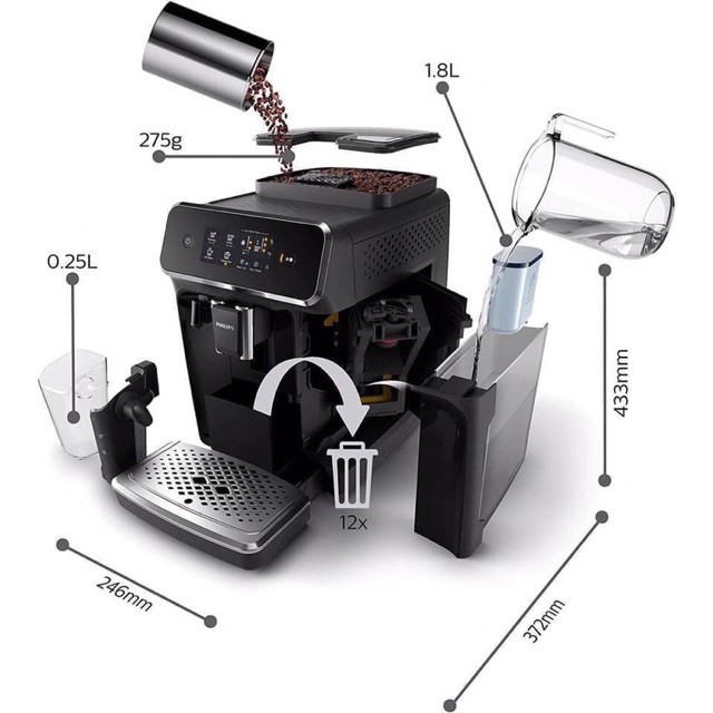 ☕Với máy pha cà phê Philips EP2221/40 với hệ thống sữa LatteGo, bạn có thể thưởng thức ba đặc sản cà phê thơm (espresso, cà phê, cappuccino) - dễ dàng hơn bao giờ hết.