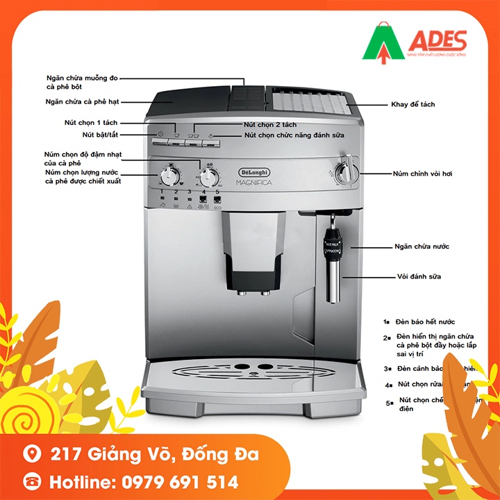 - Chức năng pha cà phê: Espresso; Cappuccino