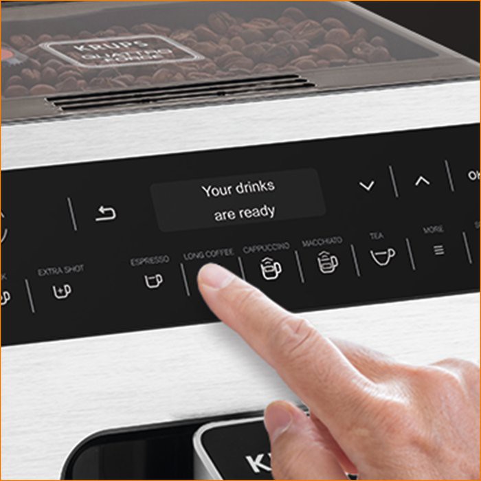 Điều chỉnh các chế độ, nhiệt độ, số lượng với màn hình cảm ứng, máy có thể lưu lại công thức yêu thích chỉ với một nút bấm. Nếu bạn thích một cốc cappuccino mạnh hơn để khởi động buổi sáng, chỉ cần lựa chọn thêm 1 shot espresso. Với dung tích bình chứa 2,3 L, bạn thoải mái pha cho mình nhiều ly cà phê trong ngày.