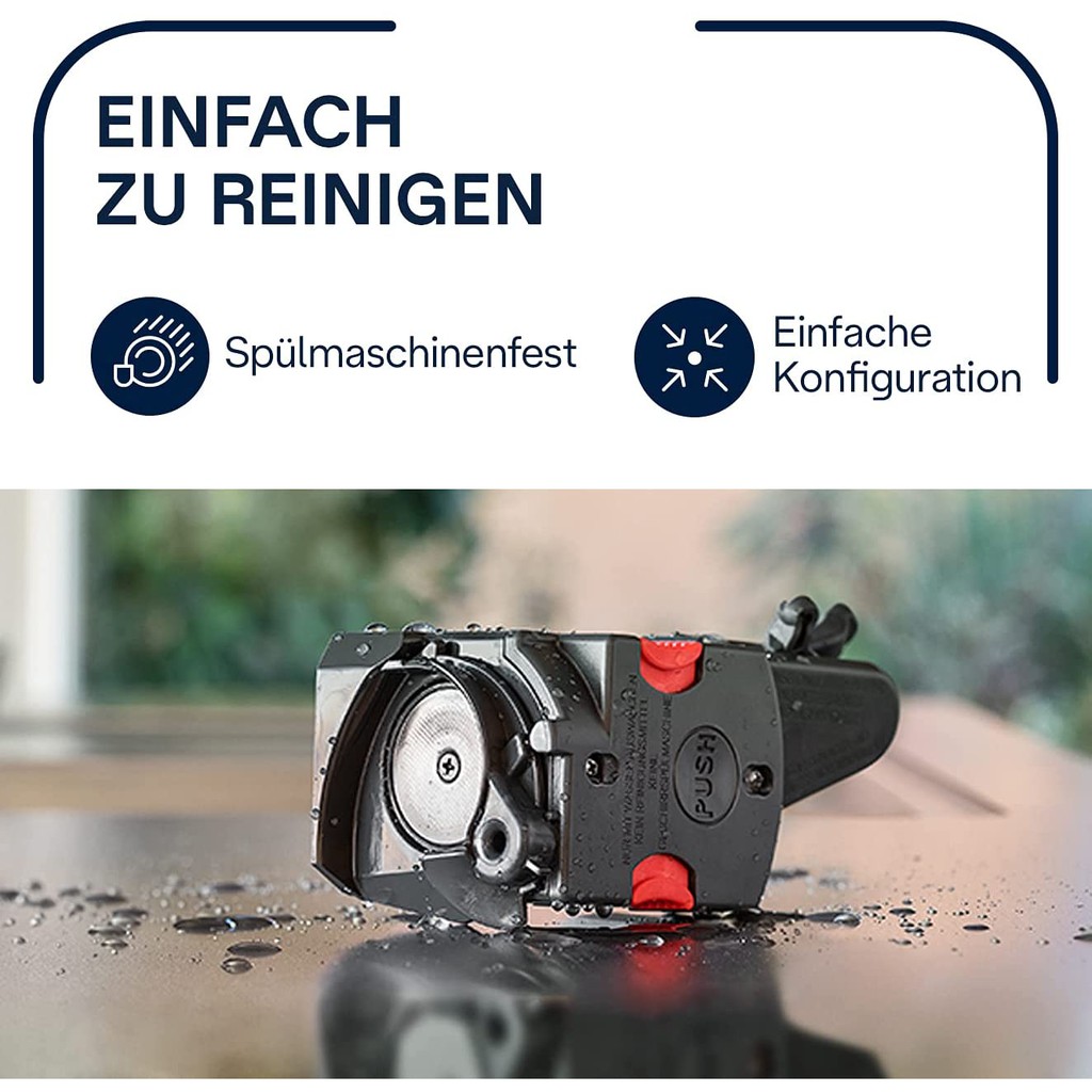 Lưỡi dao của máy được làm thép tiêu chuẩn Ý cho máy pha cà phê, thép này sẽ giúp giảm thiểu rủi ro trong việc hoạt động của máy nếu vô tình cà phê của bạn dính phải đá, gỗ hay các vật liệu cứng khác.