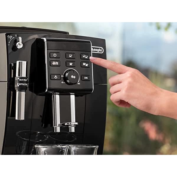 - - Ecam 25.120.B - Thiết kế nhỏ gọn, màu sơn sáng bóng và bảng điều khiển với nút nhấn một chạm và hai ly trực tiếp và tạo bọt / hơi nước.