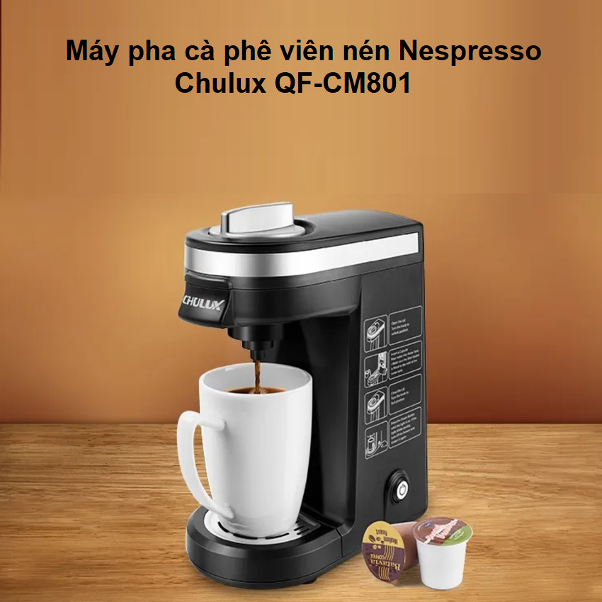 - Giới thiệu máy pha cà phê viên nén Nespresso Chulux QF-CM801 là sản phẩm cao cấp chuyên dùng cho gia đình, công sở và du lịch. Máy sở hữu dung tích lớn, không phát ra tiếng ồn, thiết kế sang trọng