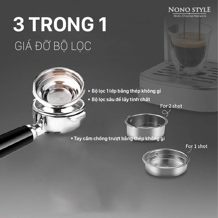 - Áp suất 20 Bar chuyên dùng cho pha chế với lực ép mạnh tạo độ đậm đặc tinh túy.