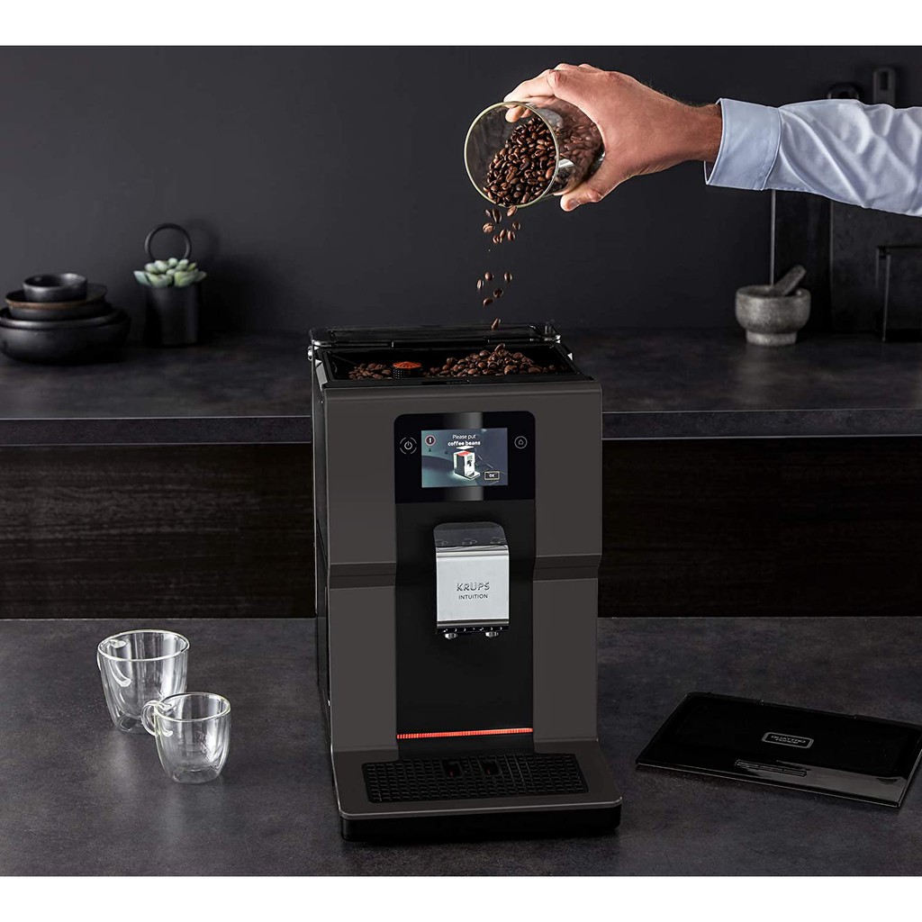MÁY PHA CAFE TỰ ĐỘNG KRUPS EA872B - Màn hình cảm ứng siêu hiện đại☕ Hiện đại và tuyệt vời: Máy pha cà phê hoàn toàn tự động Krups Intuition với màn hình cảm ứng màu 3,5″ hạng nhất, giống như điện thoại thông minh.