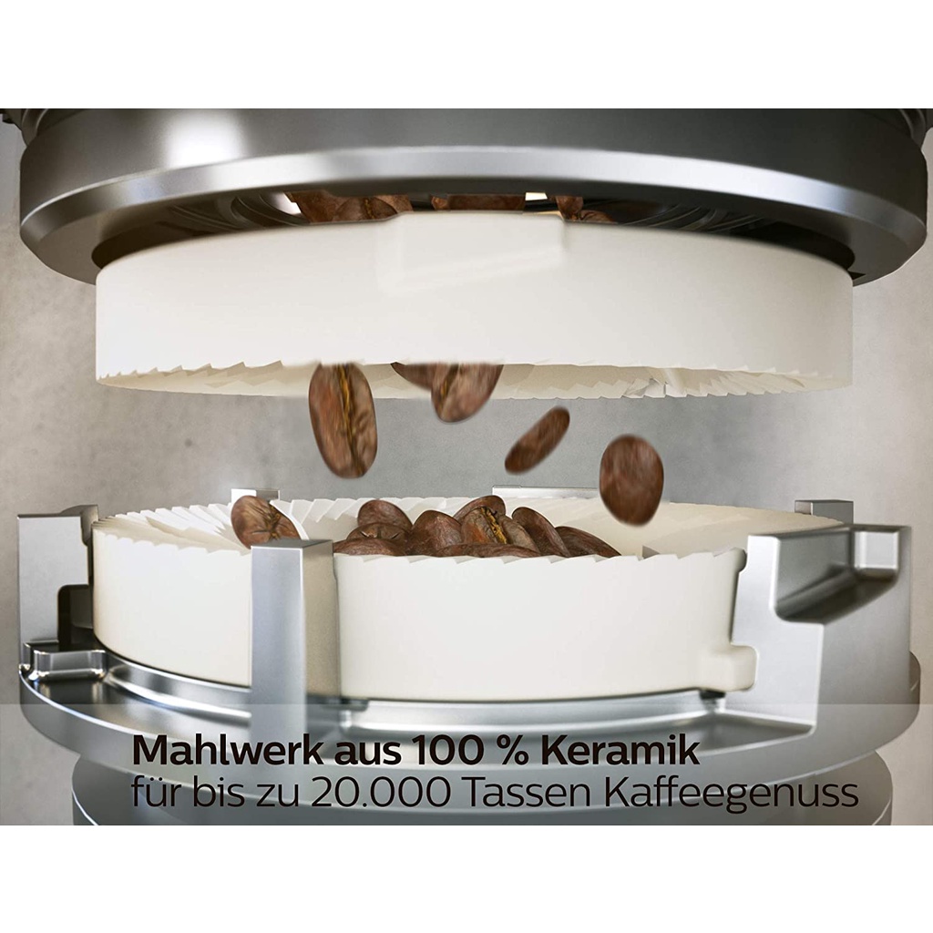 Máy xay Philips là gốm nguyên chất 100%: cực kỳ cứng và chính xác, vì vậy bạn có thể thưởng thức cà phê thơm tươi, với ít nhất 20.000 cốc.