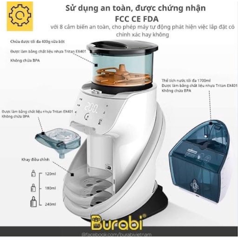 [ BH chính hãng] Máy pha sữa cho bé Burabi plus + hỗ trợ kỹ thuật trọn đời
