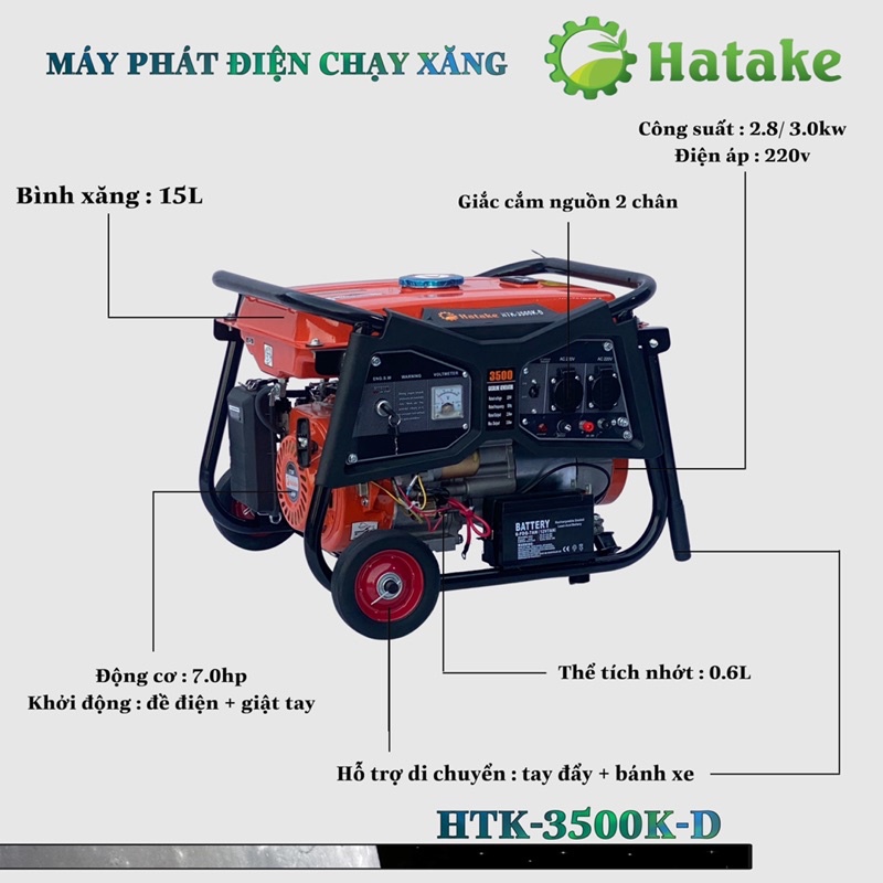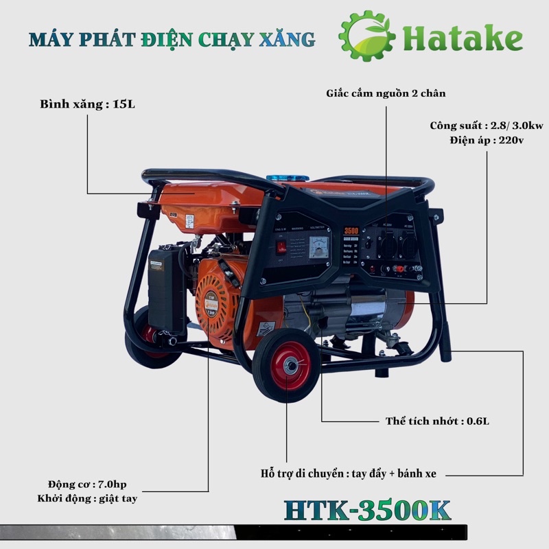 Nhà cửa & Đời sống > Dụng cụ & Thiết bị tiện ích > Dụng cụ > Mát phát điện || Máy phát điện chạy xăng Hatake ( HTK-3500K-D & HTK-3500K )Còn hàng