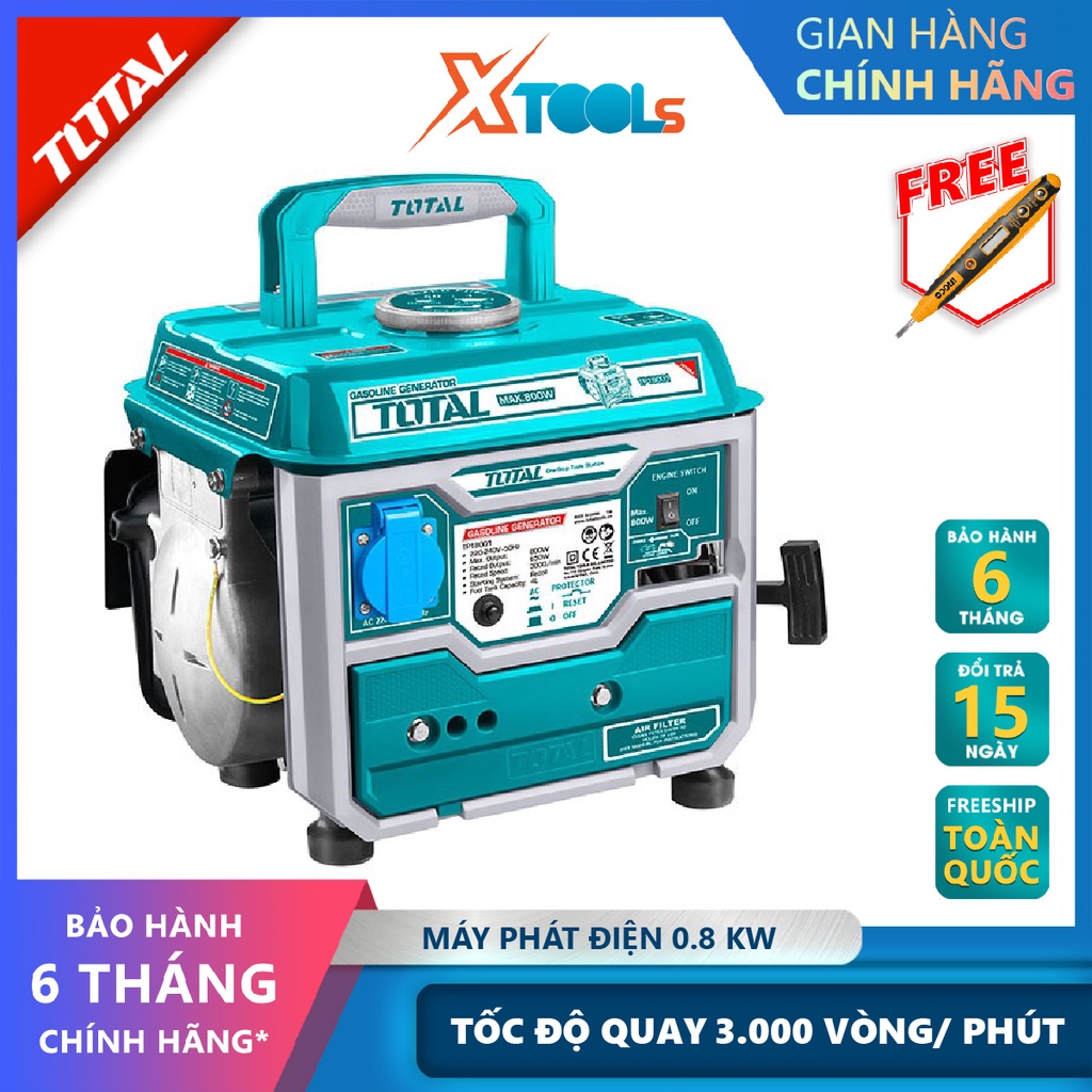 Nhà cửa & Đời sống > Dụng cụ & Thiết bị tiện ích > Dụng cụ > Mát phát điện || Máy phát điện chạy xăng TOTAL TP18001 động cơ phát điện dùng xăng 26kg Nguồn điện 220V/50Hz/1 pha, động cơ 2 thì, ThùngCòn hàng