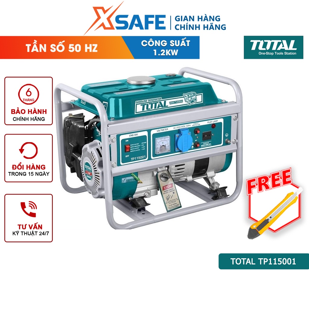 Nhà cửa & Đời sống > Dụng cụ & Thiết bị tiện ích > Dụng cụ > Mát phát điện || Máy phát điện chạy xăng TOTAL TP115001 động cơ phát điện dùng xăng 220-240V/50hz , Công suất tối đa 1.2 KWCòn hàng