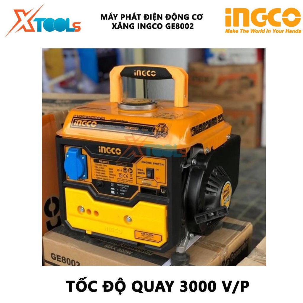 Máy phát điện động cơ xăng INGCO GE8002 Máy phát điện dây nhôm, Nguồn điện: 220V - 240V / 50Hz / 1 pha, công suất 0.8KW
