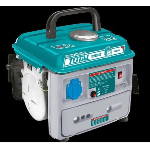 Máy phát điện Total TP18001 Mini 800W Động Cơ Xăng Pha Nhớt Giật NổMáy phát điện Total TP18001 có khả năng phát điện, cấp điện cho các thiết bị sử dụng nguồn điện áp 220V - 240V, tần số 50Hz, phù hợp sử dụng tại các gia đình, cung cấp điện cho thiết bị chiếu sáng, quạt, nồi cơm điện hay những thiết bị có tổng công suất hoạt động dưới 0,65KW (650W) khi nguồn điện lưới gặp sự cố.